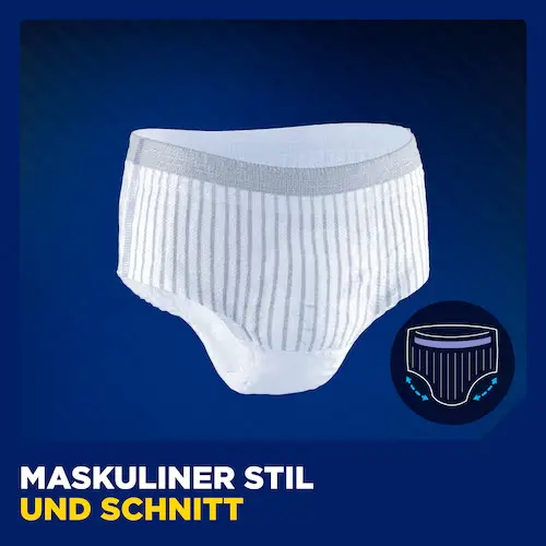 Die TENA Men Premium Fit Maxi ist hochwertige Einwegunterwäsche für Männer mit stärkerem Harnverlust. Sie verbindet den vertrauten Look normaler Unterwäsche mit zuverlässigem Schutz – perfekt für aktive Männer, die sich Disziplin und Diskretion gleichermaßen wünschen.